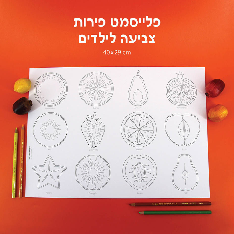 פלייסמט צביעה לילדים - דגם פירות (מארז 8 יחידות) OY