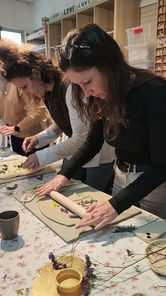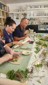 סדנת גינה בצלחת היא סדנת קרמיקה שבה יוצרים צלחת מקרמיקה עם הטבעות של פרחים וצמחים אמיתיים.